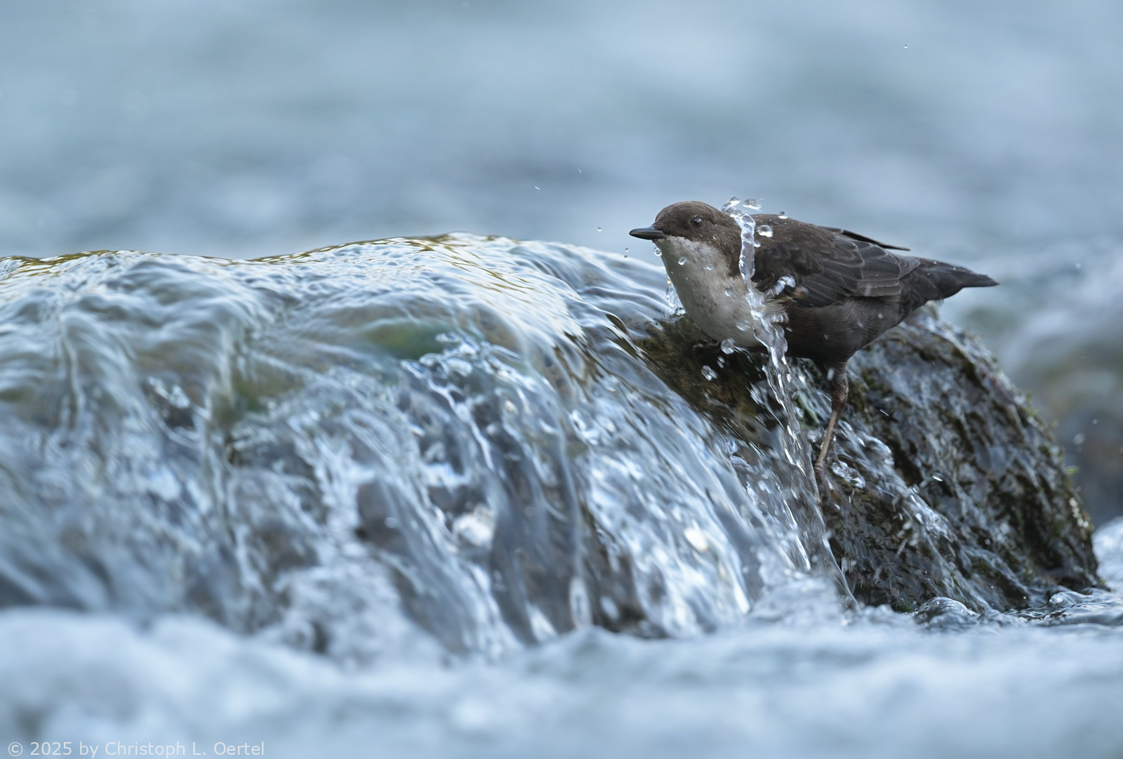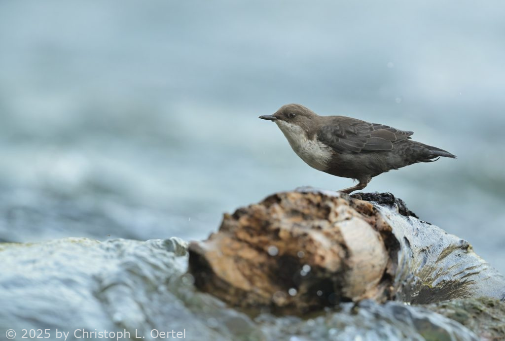 ist sie zu Hause. Die Wasseramsel. Emsig sucht sie die bemoosten Steine über und unter Wasser nach Insektenlarven ab. Sie muss regelmäßig Pausen einlegen, um sich aufzuwärmen und das Gefieder einzufetten.