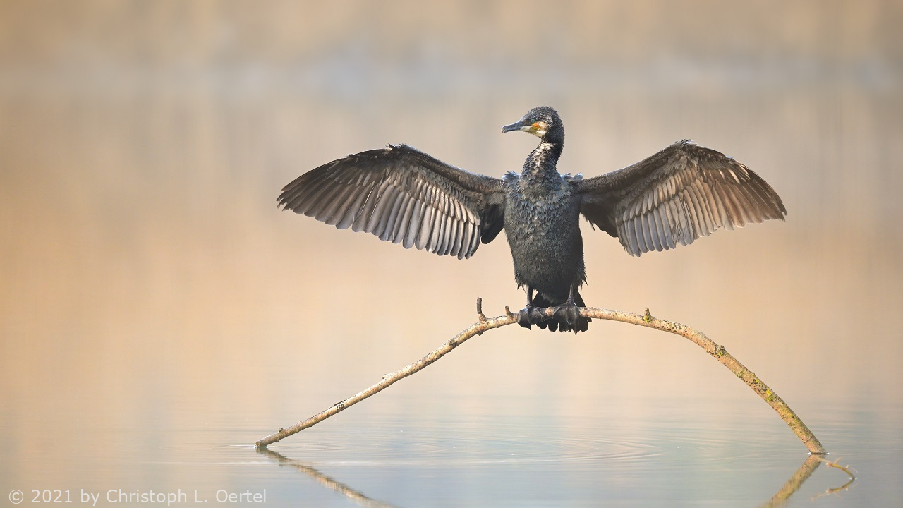 Die Sonne brach gerade so durch den Morgennebel, als der Kormoran seine Flügel spreizte. So hatte ich mir das vorgestellt. Aber nicht jeder Fotoansitz verläuft nach Plan.