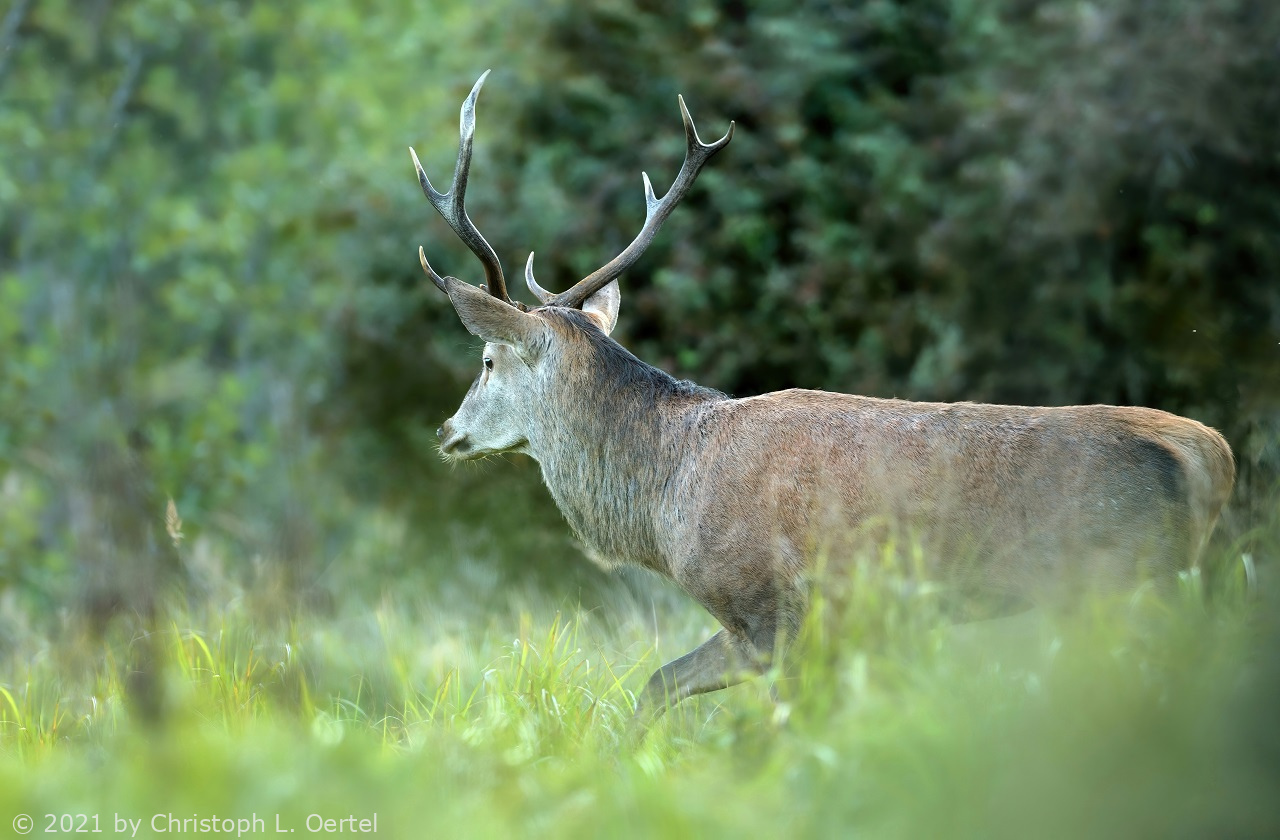 Schnell schleicht sich auch mal ein Nebenbuhler ins Revier – unbemerkt vom Platzhirsch – und sucht seine Chance.