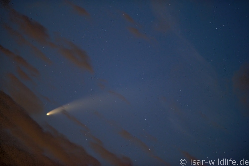 Komet NEOWISE (C/2020 F3) lässt sich aktuell recht gut abends (nach 23:00 Uhr) am Nordhimmel beobachten. Am besten etwas Abseits von Ortschaften und etwas erhöht positionieren. Mit bloßem Auge bereits gut erkennbar. Mit Fernglas gehts noch besser.