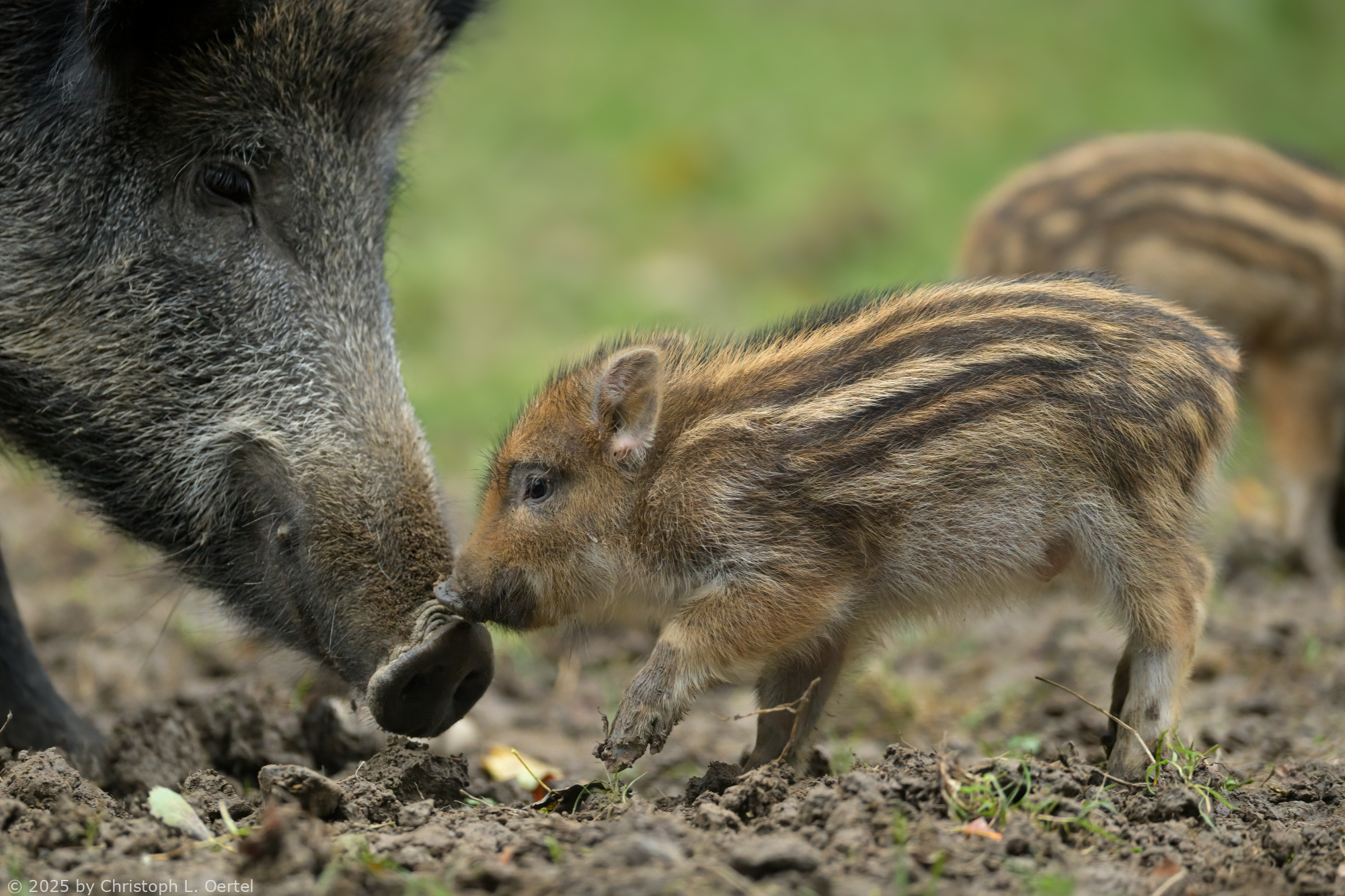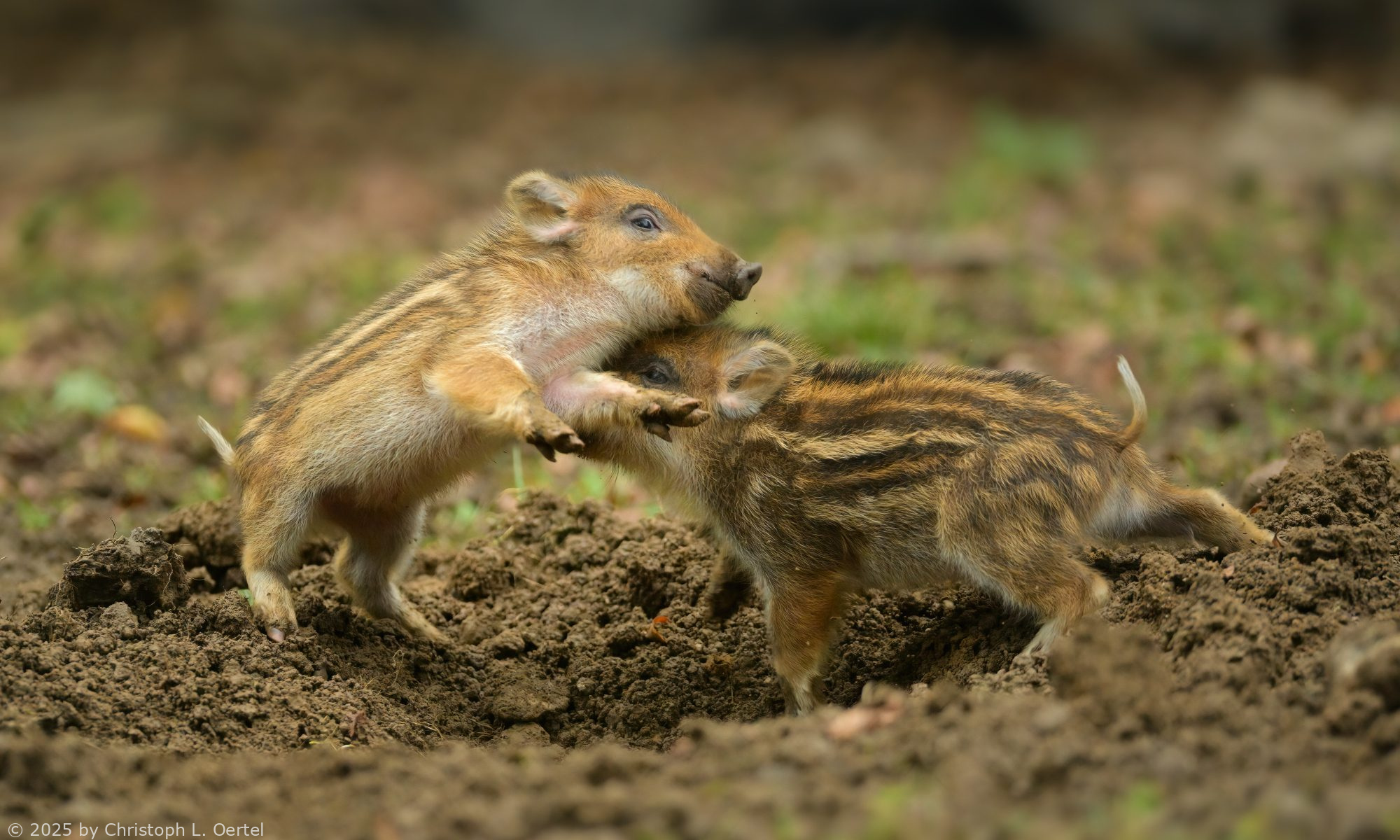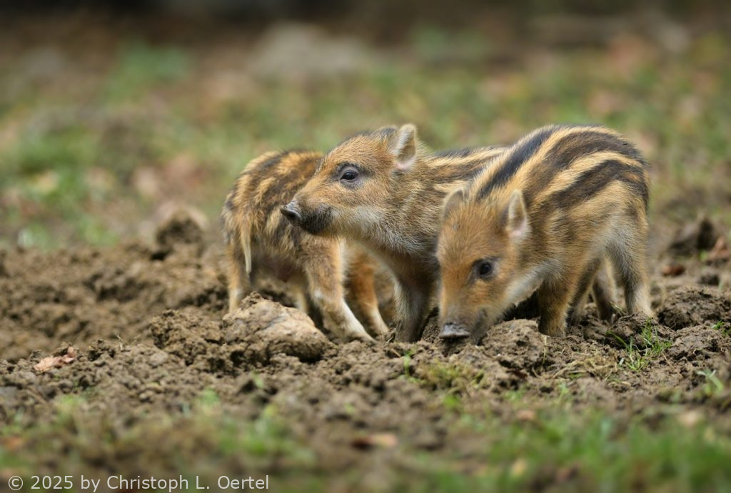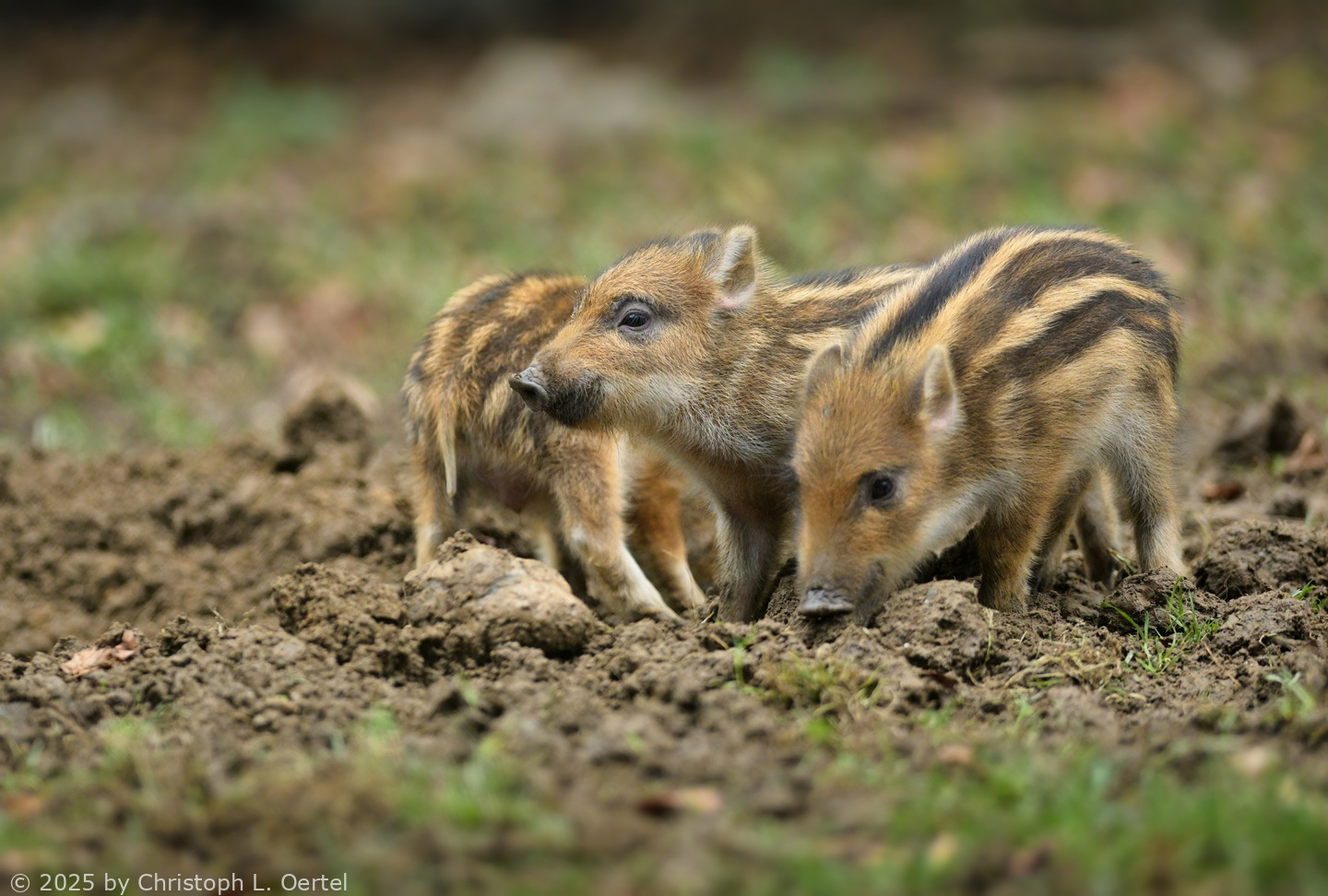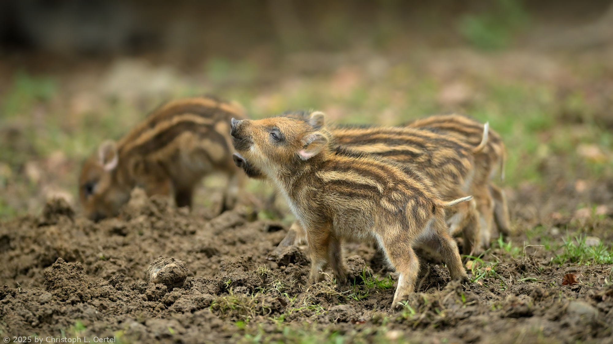 Mit so kleinen Frischlingen hatte ich nun wirklich nicht um diese Jahreszeit gerechnet. Sie spielten eine ganze weile vor der Kamera, bis sie sich mit der Bache wieder ins Unterholz verzogen.