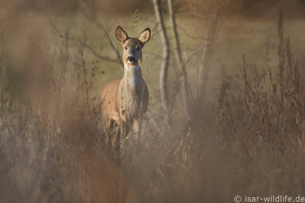 Überraschungsgäste sind ja nicht immer Willkommen. In diesem Fall schon. Beim Warten auf die Kornweihen erschienen plötzlich drei Rehe in der Brache. Der Spiegelschlag von der Kamera hat dann gleich mal die Lauscher aufgestellt. Nach ein paar Minuten war es den dreien dann doch zu unheimlich und sie trollten sich wieder.